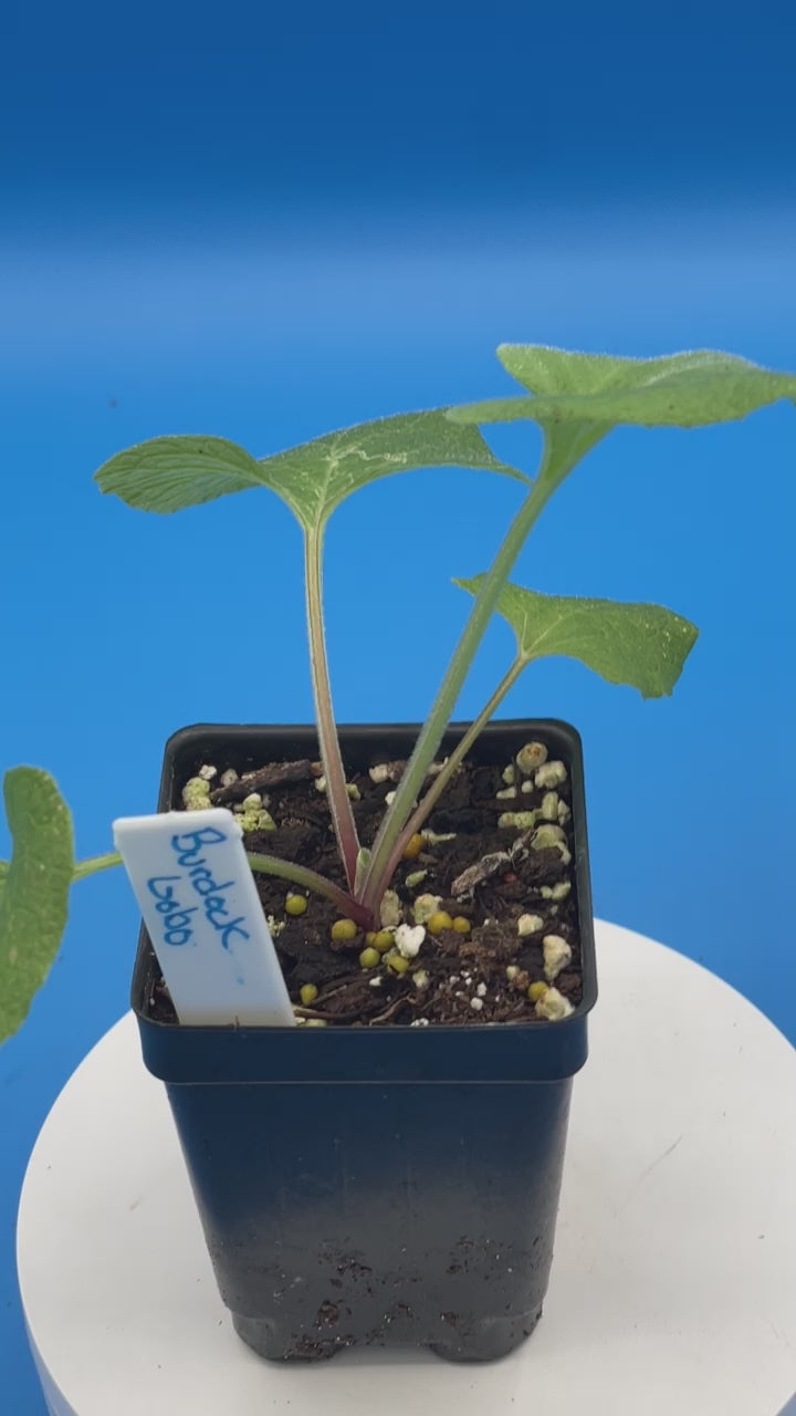 Famous for its delicious root, and notorious for its burrs that’ll readily hook and stick to clothing and animals. Burdock is a plant that is easy to grow and produces tons of spiky flower heads, that are similar to thistle in appearance.
