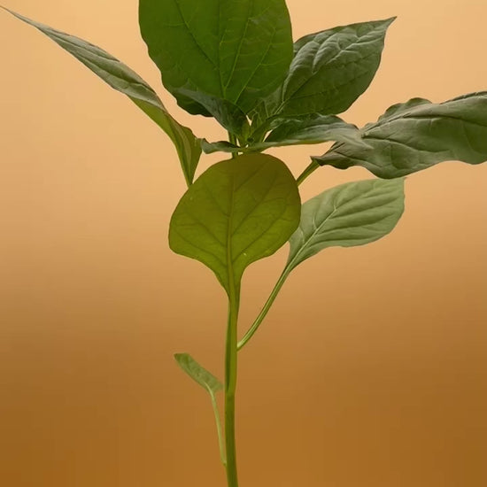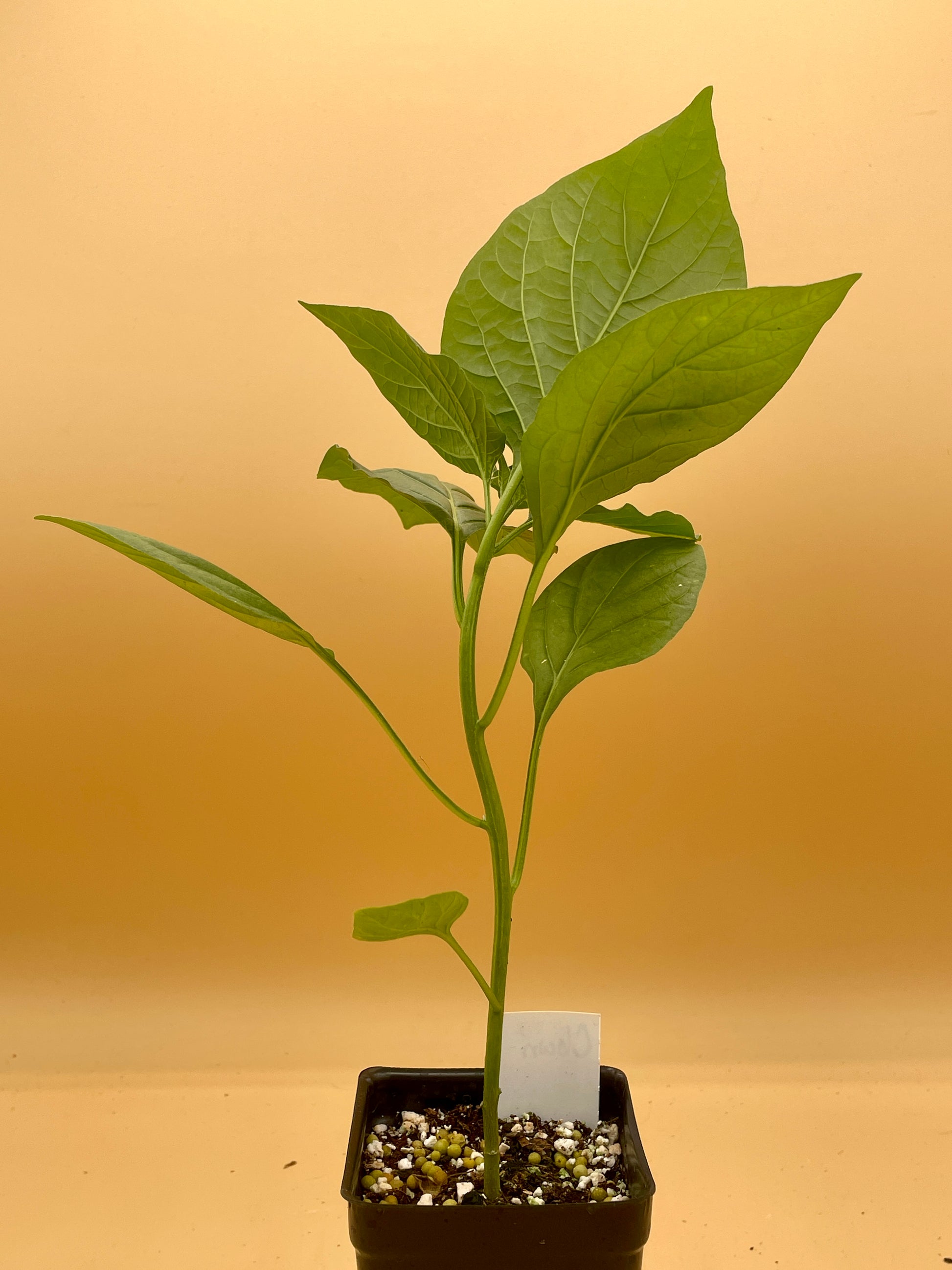 The Bishop’s Cap or Clown pepper is a varietal of the species Baccatum pepper that also includes Lemon drop – a favorite in Peru – that originated in South America and is so named for the three lobes that give it its distinctive shape that resembles a bishop’s cap. The plant grows to a large height of 3-4 feet producing flushes of green peppers that take 90-100 days to mature. The peppers start as a light green, turning to orange, maturing into a striking red. What really sets these peppers apart is their phenomenal and versatile taste. Ranging from 5000-30000 units on the scoville they are like chipotles in heat. With a tangy sweet and spicy bite having an exceptionally crisp skin, these peppers will the star of your next salsa or pickling batch.