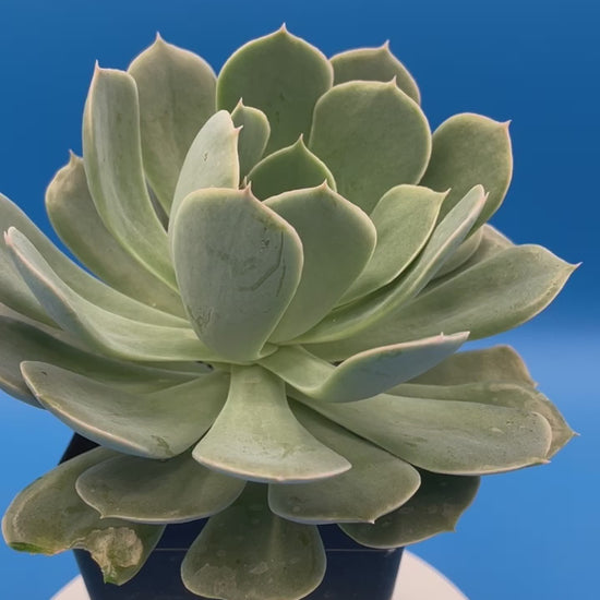 Tight rosette of leaves, evergreen, and readily offsets. Great for filling in larger areas like rock gardens with succulents. They also will do well in pots with good drainage, and will fill in a container well. While color is greatly affected by environment, Elegans generally has pale silvery leaves (blue to yellow green tints) and pinkish red stems, and will bloom with pink flowers.