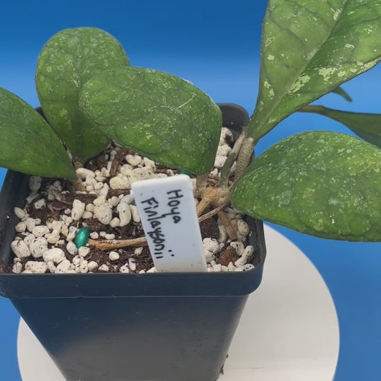 Hoya finlaysonii, also known as the Finlayson's Hoya, is a beautiful and unique plant known for its striking foliage and charming flowers.