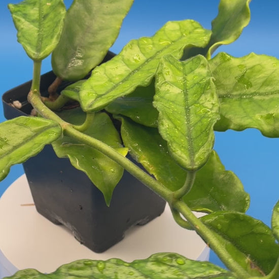 Low Water, Part-sun, Part-Shade, 60–85 °F. Hoyas in general are easy to care for, but there are some basic tips to keep in mind when caring for and choosing a location for your hoya. Hoyas can tolerate a fairly long time without water, this variety even more so, due to their succulent like nature. Overwatering will lead to yellowing leaves, that will not re-green, and will fall off leaving the stem bare. Generally, only watering a few times during the spring/summer season, and almost never during the winter has given us the best results. Hoyas love well-draining soil and do not want constantly wet roots, so watering only when the soil is completely dry is recommended. They do well indoors but will need light to grow well, although they will survive without direct sun. Optimal lighting conditions are often described as dappled light or morning sun. Outdoors they should be protected from frost and intense sun but otherwise will typically do very well on their own.