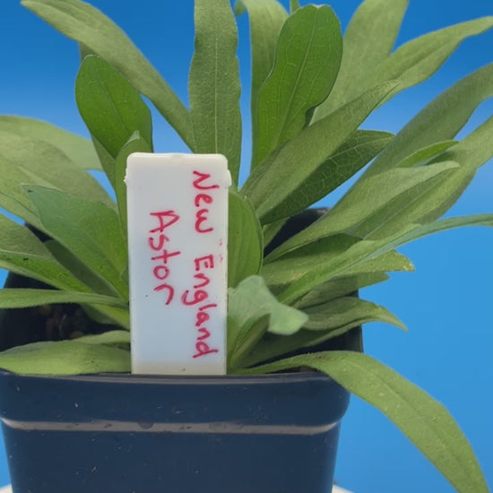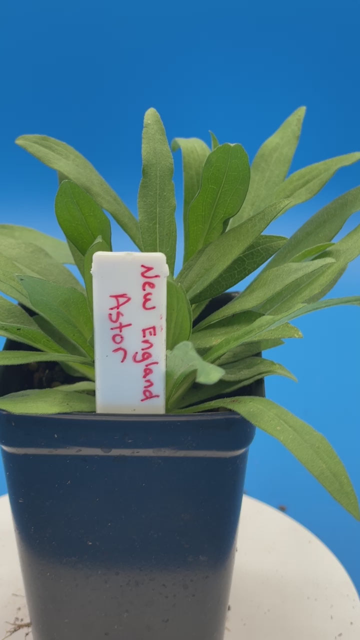 New England Aster (Symphyotrichum novae-angliae), also known as Michaelmas Daisy, is a beautiful perennial herbaceous plant that adds vibrant color to gardens in late summer and fall. Beautiful violet flowers that grow in a clumping habit that can grow several feet wide and reaching up to six feet tall. Stout stems with thin leaves, low maintenance once established. Great as a late season bloomer, able to add color in the garden and food for pollinators when it can be scarce.