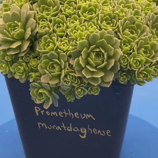 Prometheum muratdaghense, commonly known as Turkish Stonecrop, is a charming ground-cover succulent that forms tight rosettes of green leaves with pink to red tinges in bright sunlight. Native to rocky landscapes, it thrives in poor, gritty soil with excellent drainage and requires minimal water, making it a great choice for drought-tolerant gardens. In summer, it produces delicate white to pale yellow flowers, attracting bees and butterflies while remaining resistant to deer and rabbits. Ideal for rock gardens, retaining walls, and pathways, this low-maintenance plant spreads slowly, creating a unique textural display. It's well-suited for both outdoor landscapes and containers, providing year-round interest with its evergreen foliage.
